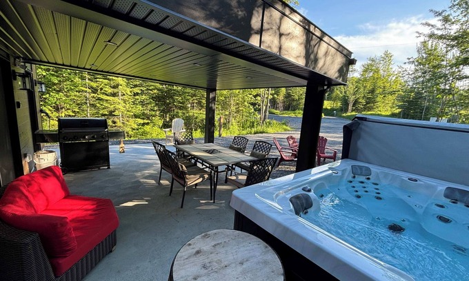Treat yourself to an unforgettable getaway in the heart of nature in Adstock at this charming chalet. Enjoy a relaxing stay with its year-round hot tub, outdoor fire pit for starlit evenings, and patio furniture to savor the fresh air. With a fully equipped kitchen and cozy living room, it’s the perfect retreat for warm moments with family or friends. Just minutes from Mont Adstock’s outdoor activities, every day promises adventure and relaxation.
