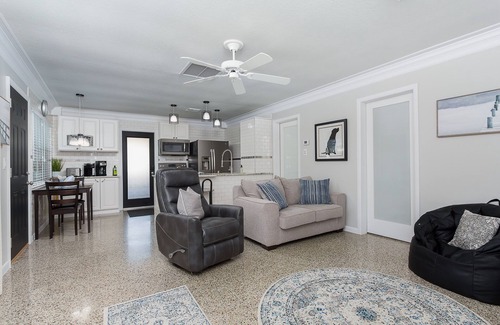 Updated photo's coming soon. We added more amenities: Recliner chair, faster Wi-Fi, laptop desk, beach chairs and towels. Beach Cruisers available on request. Discounts for 30 day stays, please send note to owner. Well behaved dogs OK on approval.