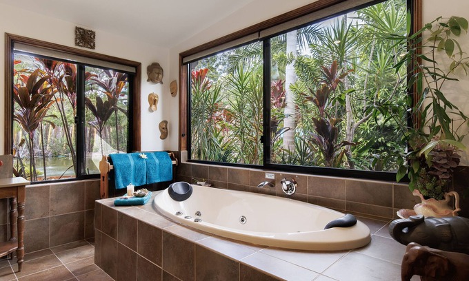 The home is ideal for an adult family - 2 couples or a group of 4 - to relax, bliss out, and enjoy one another’s company. With Mallee’s Creek, the dam, and 3 acres of tropical paradise all in your backyard, you’ll have a tough time wanting to leave for the entire weekend.