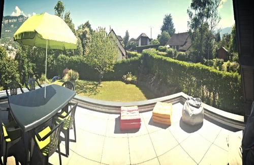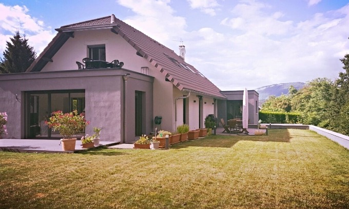 Spacious apartment of 130 m2, on the 1st floor of a detached house, with a private terrace of 25 m2 in a quiet area with breathtaking views of the Revard. Ideally located you are close to the city center of Aix-les-Bains, the lake, golf, tennis, the bike path, the cinema ... all activities. You can walk to the beach in 15 minutes through the woods from the house. This spacious and completely renovated apartment is a haven of peace to spend your holidays in our sumptuous region