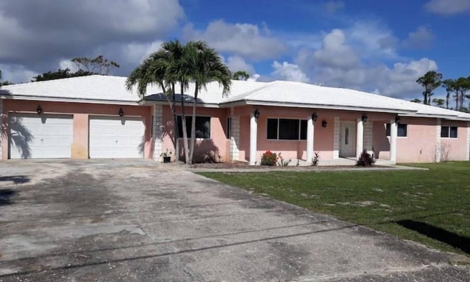 Beautiful, large 4 bedroom family home in a quiet and safe neighborhood, each bedroom with ensuite bathroom. The property is 5 mins away from beaches, shopping,and entertainment( Port Lucaya,fish fry at Smith's Point , William's town, and Taino Beach). Fully equipped with washer, dryer, TVs, wifi and soaker tub in the master bathroom.