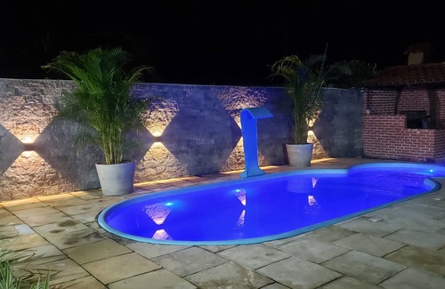 Yes, this Santo Agostinho house has a swimming pool. Check the Facility Overview section for details about the pool and other available facilities.