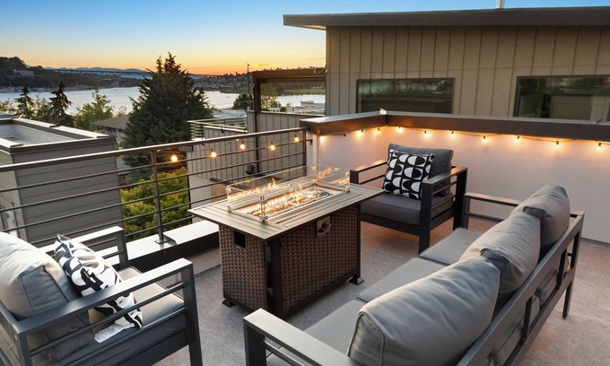 Perfect for families, friends, and business travelers! Enjoy stunning rooftop views of the Space Needle, Lake Union, and sunsets over the Olympic Mountains. Front-row seats for 4th of July fireworks!