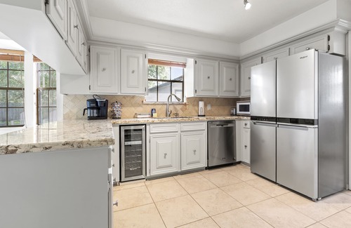 Meal prep for the week or entertain guests in the fully equipped kitchen with complimentary coffee, wine fridge, and wet bar.