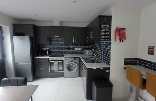 Discover your ideal Westport retreat in this bright, airy 4-room apartment just a 4-minute walk from Castlecourt, Plaza, and Knockranny House Hotels. Enjoy free on-street parking, a quiet yet central location, and beautifully refurbished rooms with modern appliances and high-speed WiFi. Relax in the comfortable living space, unwind on the small patio, or explore the vibrant town and nearby Wild Atlantic Way. Perfect for wedding guests or travelers seeking comfort and convenience in picturesque Co Mayo.