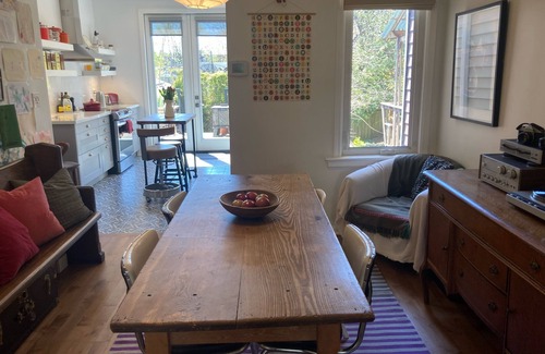 This very spacious one-bedroom apartment is arranged over the ground and basement levels of a 100-year-old house. Usually, we're living here, but sometimes we're not, and then we welcome you to enjoy our space as your home away from home.