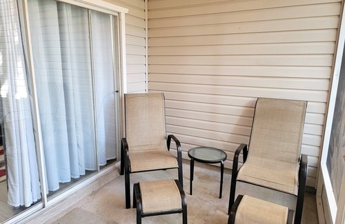 This one bedroom one bath condo located in a gated community has a spacious 1 story floor plan. It is tastefully decorated for your home away from home. This condo space is perfect for couples or small family of four or less. Our space is also perfect for the business traveler to work remotely, with extremely fast internet. The floor plan features a large living room with a dedicated dining area with table and four chairs, open kitchen, separate laundry area, spacious bedroom, and bathroom, with tub/shower combo and a screened porch. Bar area has two bar stools for you to enjoy a bite to eat. The couch has a pullout sleeper. Large Flat panel 49-inch HD TV in the living room and the bedroom have 32-inch flat-panel television. The screened porch has two loungers and a table and is a great place for your morning coffee. The washer and dryer are located in the laundry room. 1 car garage gives you an extra place to park your car.