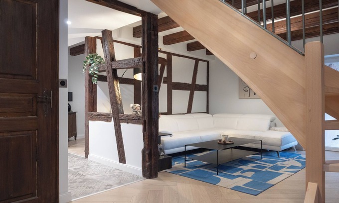 Welcome to our exceptional home, nestled in a charming Alsatian village just 20 minutes from Strasbourg. Passed down through generations, this house has been lovingly restored in 2024 by our family, preserving the authentic charm of its exposed wooden beams while adding modern touches.