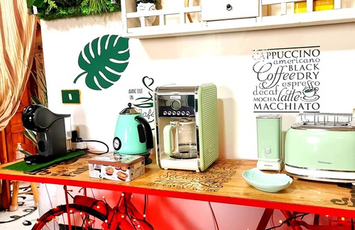 Fully Equipped Kitchen: complete with everything, including a one-of-a-kind bike-shaped coffee corner.