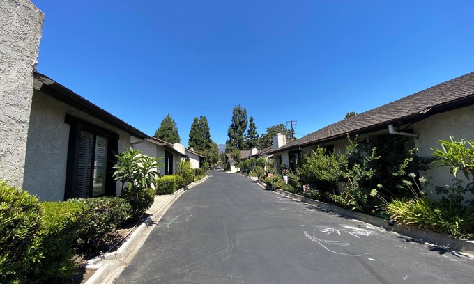 This quiet and open plan condo features 2 bedrooms w queen beds, sleeping a total of 5 people. 2 bathrooms 1 with a bidet, and a vibrant living room with an added sofa bed. Colored concrete counter tops shower and floors. Guests can relax and enjoy a fully equipped kitchen, HVAC, WiFi, 60” TV, fitness equipment, washer/dryer (in attached garage) Complete privacy in a popular foothill community bordering Pasadena, San Marino and thee Los Angeles County Arboretum. Santa Anita racetrack and Santa Anita mall. All within walking distance The Angeles National forest is 20 minutes driving.