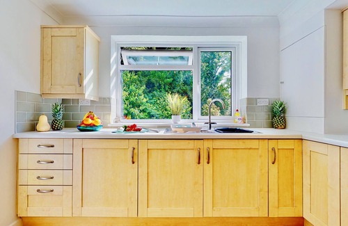 The kitchen has huge windows that overlook the private communal gardens with beautiful view of rhododendrons and flowers to enjoy while you cook! Oh and it’s also fully equipped with new appliances and kitchenware (2023), there is an electric hob, oven, microwave, fridge / freezer, , and toaster. Plus everything from pots pans, pizza cutters mixing bowls and all you need to cook in your home.