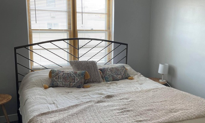 This memorable apartment is the perfect home base for your trip to Dyersville. Nestled in the heart of the town, this marvelous property offers a cozy and inviting atmosphere for guests. With 2 bedrooms, including a king bed and 2 sets of bunk bed, it comfortably accommodates small groups or families. The bathroom features a bathtub, adding a touch of luxury to your stay. Enjoy the convenience of amenities like a hair dryer, heating, AC, WiFi, and a washing machine. Experience the magic of Dyersville at our apartment.