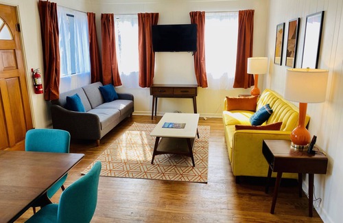 Our Two Bedroom Apartment has everything you need for a great stay in Lyons for you and your family or friends. The master bedroom is spacious with a king bed and electric fireplace to light up the ambiance. The guest bedroom has a cozy queen bed and plenty of privacy. All beds are Zoma mattresses which provide an amazing nights sleep,.