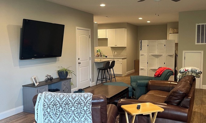 This 2-bedroom apartment near Clemson and Lake Hartwell is waiting for you. With a king bed and a full bed, this adorable space is perfect for a small group of guests. There is additional space in the living room for an air mattress if additional sleeping space is needed. A pack and play is also available upon request. The spacious kitchen has all the basics (microwave, pots, dishes, and utensils). There are also a variety of games and dvds available for guest use. Enjoy the convenience of amenities like AC, heating, a washing machine, Roku TV, and WiFi. The bathroom features a standup shower and a hair dryer for your comfort. The apartment is just 15 minutes from Clemson and 10 minutes from Lake Hartwell to allow you to be involved in all the area has to offer! Kickback, relax, and enjoy the area and our apartment!