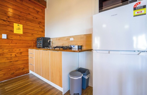 Our kitchenette is well equipped including a toaster, kettle, portable stove & oven, cookware and microwave. We've also provided cutlery and dinnerware for your convenience.