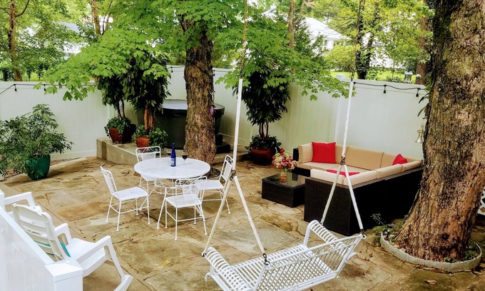 Spacious 2 BR, 1 1/2 baths, with hot tub, pool table, large full kitchen and outside room. The "outside room" invites you to relax under the twin maple trees and enjoy the hot tub, rocking chairs and porch swing in the trees, with a cup of coffee or a glass of wine. This property is a duplex, completely private with the 2 bedrooms and full bath located on the second floor, providing more privacy away from the main living space. The outside room with hot tub is completely enclosed with a privacy fence and is totally private and exclusive to this side of the duplex. There are no shared spaces except the parking. Just 11 minutes to nearest winery and only 20 minutes to Cedar Lake, 20 minutes to Cache River, 20 minutes to Giant City State Park and close to many wineries, this cozy home is the perfect retreat to come back to after a day of exploring the beautiful Shawnee Hills.