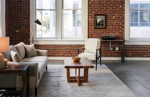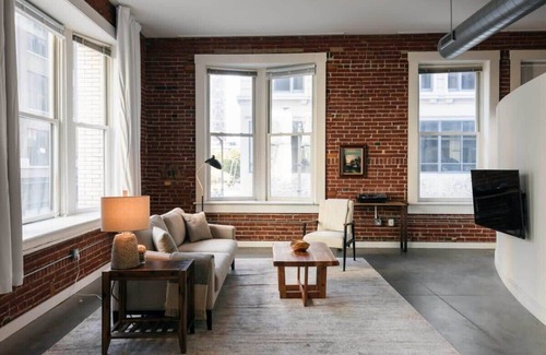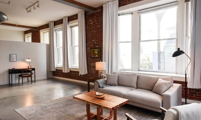 - Stylish Ambiance: This industrial-chic two-bedroom loft features exposed brick and rugged beams, providing a beautiful backdrop for pre-wedding preparations and post-ceremony relaxation.
