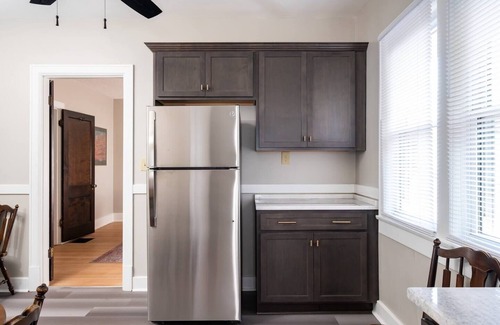 This NEWLY RENOVATED 2 Bed 1 Bath unit is located on the second floor of a duplex. The bottom unit is utilized as a long term rental. This space is perfect for small groups, couples, or business travelers. Upon arrival you'll be greeted by the brand new modern kitchen and refinished hardwood floors. The quaint sitting area is perfect for taking a break from the days activities. Two private bedrooms with new comfortable bedding (1 king, 1 queen) and a brand new modern bathroom make this loft the perfect space for a trip to Louisville.