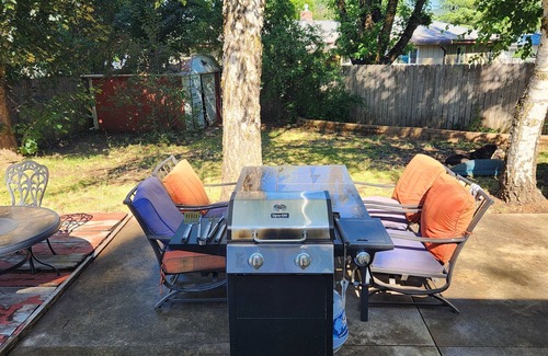 Nestled in Quincy, this delightful house offers 3 bedrooms upstairs, with 1 king bed and 2 queen beds, perfect for a wonderful stay. With amenities like a washing machine, WiFi, outdoor gas bbq with patio table and chairs in the fully fenced back yard, guests can enjoy a terrific experience. The 3 bathrooms with showers provide convenience and comfort. It's easy to see why you'll be able to unwind at our place. Within walking distance to downtown Quincy, including a living room and a family room both with big screen Smart TVs, for entertaining. A large fully equipt kitchen with seating for 6 at the dining table and 3 barstools at the counter.