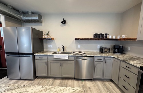This charming lake house offers exclusive access to a private marina, complimentary kayaks, and a gas fire pit—ideal for cozy evenings by the water. Inside, the home features a warm and inviting open concept living space, a fully equipped kitchen, and generously sized bedrooms for comfortable stays. Originally a general store, this unique property sits at the end of a quiet lot behind private storage units, offering low traffic, ample privacy.