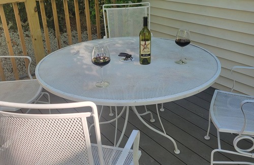 Spacious 3 bedroom, 2 full baths, with hot tub, fireplace and outdoor deck. The deck invites you to relax next to the twin maple trees and enjoy the hot tub, rocking chairs and dinette set with a cup of coffee or a glass of wine. This property is a duplex, completely private with the 3 bedrooms and 2 full baths located on the second floor, providing more privacy from the main floor. The outside deck and hot tup are completely private and exclusive to this side of the duplex. There are no shared spaces except for parking. Just 11 minutes to nearest winery and only 20 minutes to Giant City State Park, and close to many wineries. Set in the little town of Anna, with walking distance to shops and resarants. This cozy home is the perfect retreat to come back to after a day of exploring the beautiful Shawnee Hills and wineries.