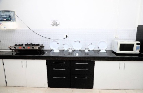 - A fully-equipped kitchen with all basic utensils, **water purifier**, **fridge**, and **gas stove** for those who prefer home-cooked meals.