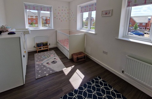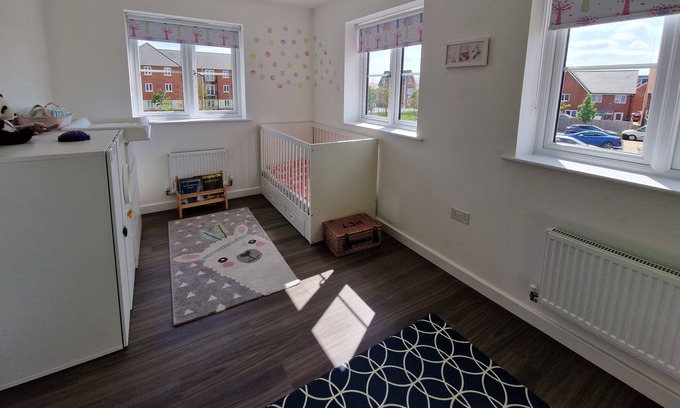 It's a 2 storey house, with a large kitchen with dining area that overlooks a nice garden, kitted with kids toys (mud kitchen, climbing frame) and adult amenities (hammock, sun lounges). 2 double bedrooms and 1 kids room fitted with cot bed and an additional travel cot upon request. 2 fully kitted office spaces with desk, monitor and a printer. Full speed Wifi. The house comes with our 2 lovely cats, which are catered for daily by a cat sitter in the garden. She will not enter the house so your privacy is protected. There are 5 different play grounds within 5 min walk for kids of all ages, and lovely green areas all around, perfect for walks with the whole family. A Co-op store, Cafe, pharmacy, post and pub, all within 5 min walk.