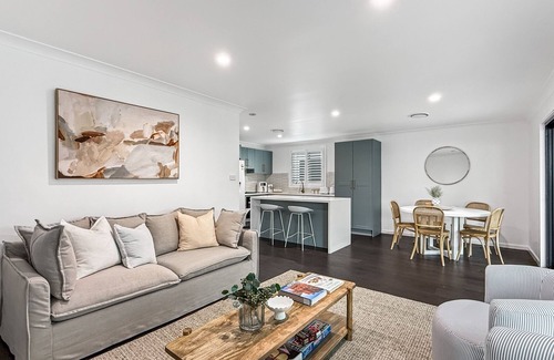 Unwind in this stylish 3-bedroom Mayfield home with a private pool and inviting outdoor dining area. Designed for comfort, it offers ducted A/C, a study nook, and full kitchen amenities. Ideal for families or business travellers, it features self-check-in, Wi-Fi, and on-site parking.