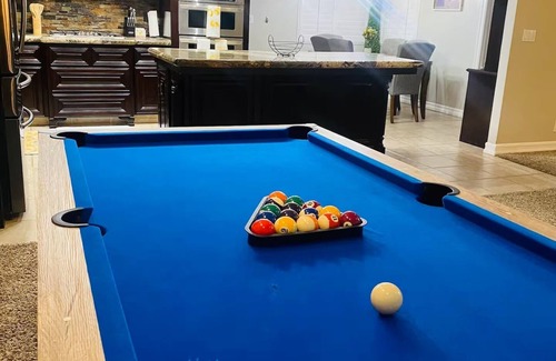 Discover the beauty of Bakersfield from this 3-bedroom house. This house features 1 king bed and 2 queen beds, perfect for a serene night's sleep. Enjoy the gorgeous surroundings and modern amenities like AC, WiFi, and a washing machine. With 2 bathrooms equipped with showers and hair dryers, guests can freshen up before exploring the city. Additionally, enjoy your stay will relaxing in the pool! Lastly, enjoy the direct access to a private neighborhood park behind the house. We look forward to welcoming you to our place.