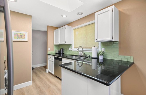 We offer a fully-stocked kitchen suited for the entire family. The master bedroom holds a king-sized bed and skylights across the home provide plenty of natural lighting. All bedrooms are on the main floor.