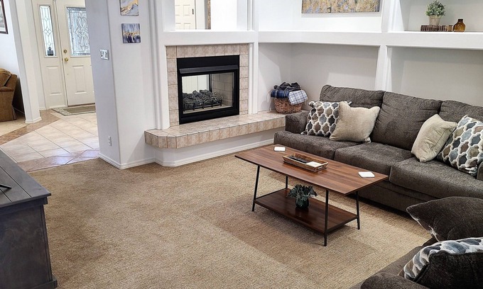 Very spacious 2,300sqft 3BR/2BA home located in the prime NE Twin Falls area and close to everything! Amenities include a large master suite with smartTV, king bed, jetted tub, walk in shower and walk-in closet. Living room with double-sided natural gas fireplace, sofa, loveseat, 55" smartTV and patio access. Home also includes office area, large kitchen and 3 car garage for your use on nicely landscaped, fenced 1/3 acre lot.