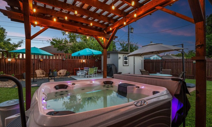 Casa Blanca is a recently renovated 3 bdrm 2 bath home with an office, screened in patio and hot tub. Kitchen is fully equipped with fridge, gas stove, small appliances (such as a blender, air fryer, toaster and more). There are 3 TVs, one in the primary, living room and patio. All have apps such as Netflix, Prime Video, etc. Backyard has multiple sitting areas where you can enjoy conversations, a campfire, or simply just reading a book. A propane grill and a charcoal Webber grill is also available for your use. A washer and dryer is also available on site. The property is just mins away from DT Round Rock, which has bars and restaurants, and only 20 mins away from DT Austin.