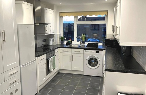 This immaculate and newly refurbished first floor maisonette is perfectly located in a prime residential location. It is a superbly designed apartment, with sleek design and an emphasis on space and comfort. The property offers over 1000 sq. ft. of living space, including a spacious living room and dining room area, separate fully equipped kitchen, 3 good sized bedrooms with fitted wardrobes, family bathroom along with a separate W/C. This 3 Bedroom/1 Bathroom apartment has everything our guests need to enjoy all the freedom a home brings: a stable WiFi connection, integrated appliances like flat screen TV with cable, washing machine, gas central heating, etc. It also has a free parking onsite for guests with cars. Other benefits include private entrance and loft space for storage.