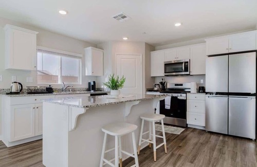 Stay comfortable year-round with central air conditioning and heating. Two large Smart TVs (65" and 70") provide entertainment options, while high-speed Wi-Fi keeps you connected. A dedicated workspace makes remote work a breeze, and the laundry room with a washer and dryer ensures your stay is stress-free.