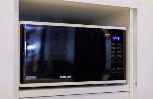 - Perfect for preparing simple meals like instant noodles or quick breakfasts. While the kitchen is equipped with a fridge, stove, microwave, kettle, mugs, utensils, pot, and pan, please note that it’s not suitable for heavy cooking as there is no ventilation hood — cooking strong-smelling dishes may cause lingering odors.