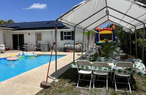 Newly renovated 3 bedroom home minutes from the beautiful Lake Worth Beach, restaurants, and Palm Beach Outlets. This home is perfect for anyone who is in need of an event space, traveling for work, family vacation, or friends weekend getaway. Parking for up to 15 cars on driveway and additional parking on the street along the fence. Hi-speed-WI-FI, Pets are welcomed upon approval...Be sure to enjoy our outdoor pool shared with other duplex on property and fenced in backyard. Please let me know details for travel.