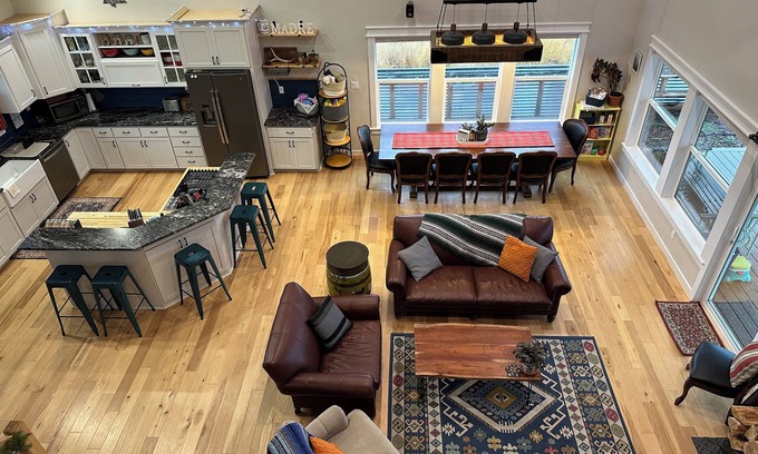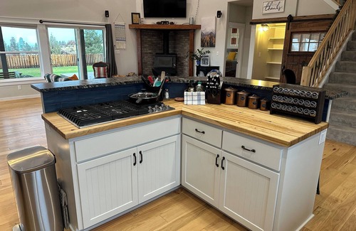 Bring the whole family to our home with a fenced-in, grassy back yard for play, with adult and kid toys/games, 18-ft vaulted connected living room and kitchen, and everything you could need for your retreat! We have four bedrooms and eight beds that can sleep up to 13 (with one crib) peopleWe have one of the best views in the area, with open sky everywhere and 180 degrees of lakes and cascade mountains! Relax on our patio at sunset after your bbq dinner, and enjoy s’mores around our firepit. We’re nestled in the shadow of Crater Lake, only 30 minutes from the national park. We’d be happy to recommend local activities/adventures during your stay. And please message us with any family gatherings/celebrations/events for prior approval.