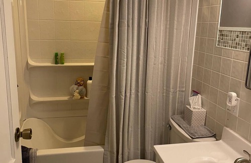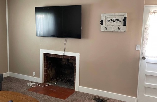 Spacious 4 bedroom home with Queen beds in each room, full kitchen, large office w/ printer, living room, dining area AND dining room! This house has all the amenities of home! On the main floor are 2 bedrooms, hall bath, two dining tables to seat 10, living area with smart TV, full kitchen with new fridge, and an office area with wireless printer. The basement holds 2 additional bedrooms, open space, laundry area, and a 3/4 bathroom. This home is family-friendly w/a safety gate at top of stairs