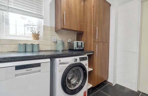 The living area is bright and welcoming, with a spacious lounge featuring a smart TV—perfect for relaxing evenings together. In the lounge is a large, luxury dining area, ideal for meals and gatherings, whether you're cooking at home or enjoying a takeaway. The fully equipped kitchen includes all the modern amenities you'd expect, making it easy to prepare and enjoy meals during your stay. You'll also have access to a washer and dryer, adding to the convenience of your visit.