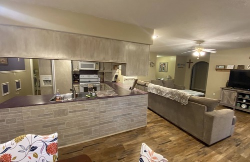 This contemporary 4 bedroom, 2 bath home is perfect for a family vacation or a much-needed getaway w/ friends. All areas of the house are available for your use. The garage is available for use on a case by case basis, send an inquiry as we store a few personal items in there.