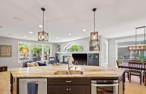Newer 4-bedroom home in a quiet, family-friendly neighborhood. This home is fully furnished with everything you will need for your stay, whether you are in between homes or in town for an extended stay! It's a short 2 minute walk to the neighborhood's own small private island on Lake Minnetonka, where you can have a picnic, enjoy the lake views from the Adirondack chairs, or relax around the fire pit!