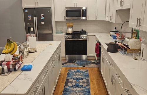 Chicago is waiting for you at this 4-bedroom house. With 1 king bed, 1 full bed, and 1 child bed, this lovely property offers 3 bathrooms equipped with hair dryers and showers. Enjoy amenities like a washing machine, iron, WiFi, heating, and AC. It's easy to see why you'll be able to unwind at our place.