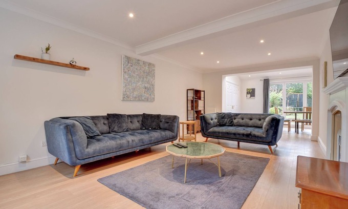 Unwind in this generous 4 bedroom house, minutes from Bishop's Stortford's charming high street and a 10 minute drive to Stansted Airport. Spread out in the large open plan living area, cook up some feasts in the ample kitchen space with breakfast bar, spill into the huge garden for alfresco dinning. Private parking for 4 cars on the driveway, comfort and convenience all in one in this spacious well equipped home. Perfect for family and friend get togethers and corporate stays!