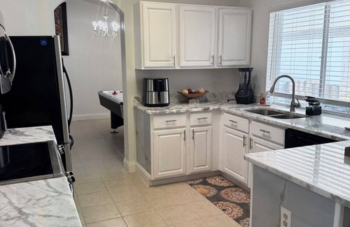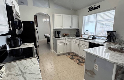 Your home away from home in Deltona with 4 bedrooms. This nice house offers a variety of sleeping arrangements, including a king bed, queen bed, bunk bed, and more. The bathrooms feature a shower and a jetted bathtub for ultimate relaxation. Guests can take advantage of amenities like WiFi, AC, and a washing machine during their stay. Property has security cameras on all exterior surfaces. Enjoy your time in Deltona at our cozy house.