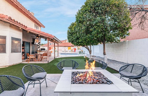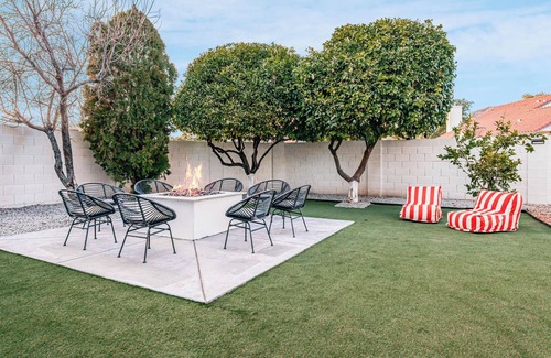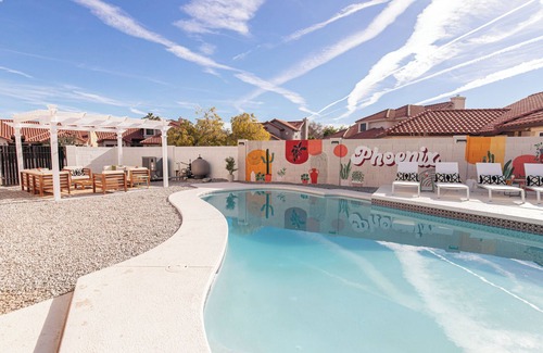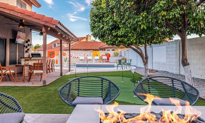 Welcome to Cactus Casa, a 2,345-square-foot oasis nestled in an ideal location between Phoenix/Scottsdale. The outdoor space is a private paradise with a heated pool, hot tub, putting green, and plenty of lounge space. Beautifully decorated interiors, a full kitchen, and plenty of entertainment make this the perfect relaxing getaway!