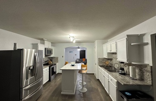Nestled in Laredo, this delightful house offers 4 bedrooms - 1 king, 1 queen, and 2 twin beds. With 2 bathrooms equipped with a bathtub and hair dryer, guests can relax in comfort. The additional living room space with a futon provides a cozy spot to unwind. This welcoming property ensures a memorable stay for all. We hope you enjoy what our place and Laredo has to offer.