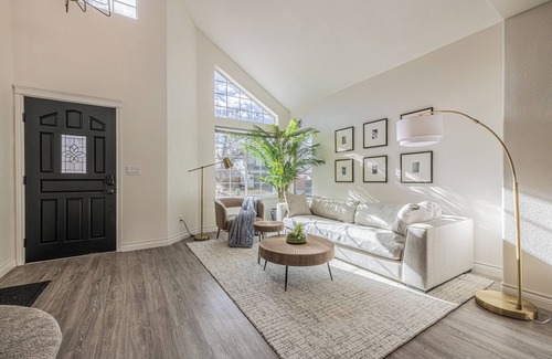 For entertainment, each living room includes a 65" Samsung TV, while the master bedroom features a 55" TV. Convenience is key with a washer and dryer, plus a 2-car garage for easy parking. Step outside to the private backyard, equipped with a grill for barbecues and plenty of room to unwind. Located in a quiet, kid-friendly neighborhood, this home offers a peaceful retreat while remaining close to local attractions.
