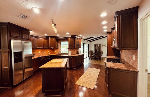 Welcome to your dream destination at this Spacious 4-bedroom house with heated pool great for large groups, ideally suited for weddings and large gatherings! This newly remodeled home offers an inviting atmosphere and ample space to accommodate up to 12 guests. The open floor plan creates seamless access to the outdoor heated pool area, making it the perfect backdrop for a romantic wedding ceremony or joyful celebrations with family and friends.