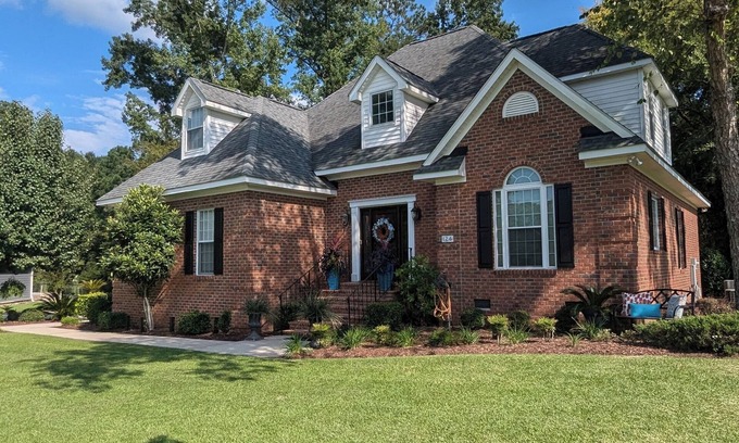Located in Conway, SC, enjoy what this 4-bedroom house has to offer. Watch all the sports action that the Coastal Carolina University Chanticleers have scheduled. Take a quick trip to Myrtle Beach to soak up the sun and bask in the sand. This adorable property features 1 king bed, 2 queen beds, and 1 futon, perfect for families or groups of friends. With 2.5 bathrooms including a jetted bathtub, shower, and bathtub, guests can relax and unwind after a day of exploring. Enjoy this peaceful, serene outdoor space on the large, wrap around, multilevel deck for dining, lounging, and soaking in the 7 person salt water hot tub nestled in a private back yard. Enjoy your time in Conway at our welcoming house.