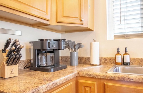 The fully fenced yard is pet-friendly and perfect for up to two pre-approved dogs (an additional cleaning fee applies). No cats or other pets allowed.